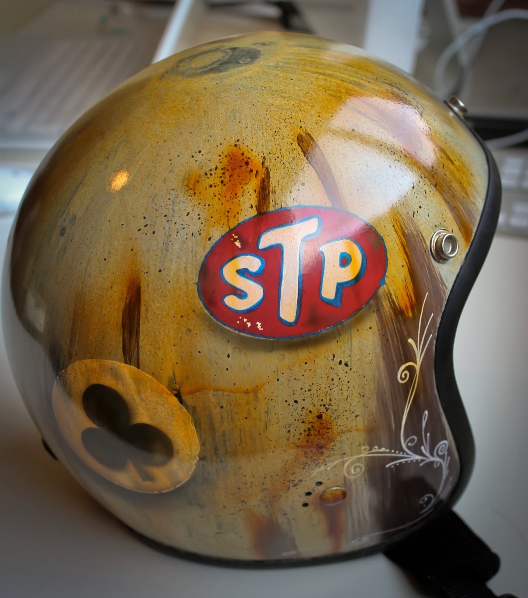Envejecido, sucio, con los logos pintados, pan de oro, un poco de pinstriping.....
